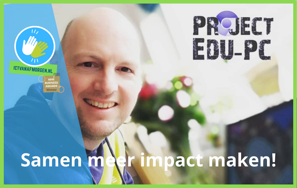 Project Edu-PC voert al haar activiteiten vanaf april 2024 uit onder de paraplu van ICT vanaf Morgen. “Vanaf nu kunnen we zo veel meer impact maken”, vertelt initiatiefnemer van project Edu-PC, Edwin Hortensius. “Anno 2024 zijn digitale hulpmiddelen en -vaardigheden onmisbaar bij de ontwikkeling van kinderen. En met de laptops van Edu-PC, voorzien van Chrome OS Flex-omgeving van Google kunnen de kinderen tekstverwerken, veilig browsen en zijn diverse tools direct beschikbaar.”