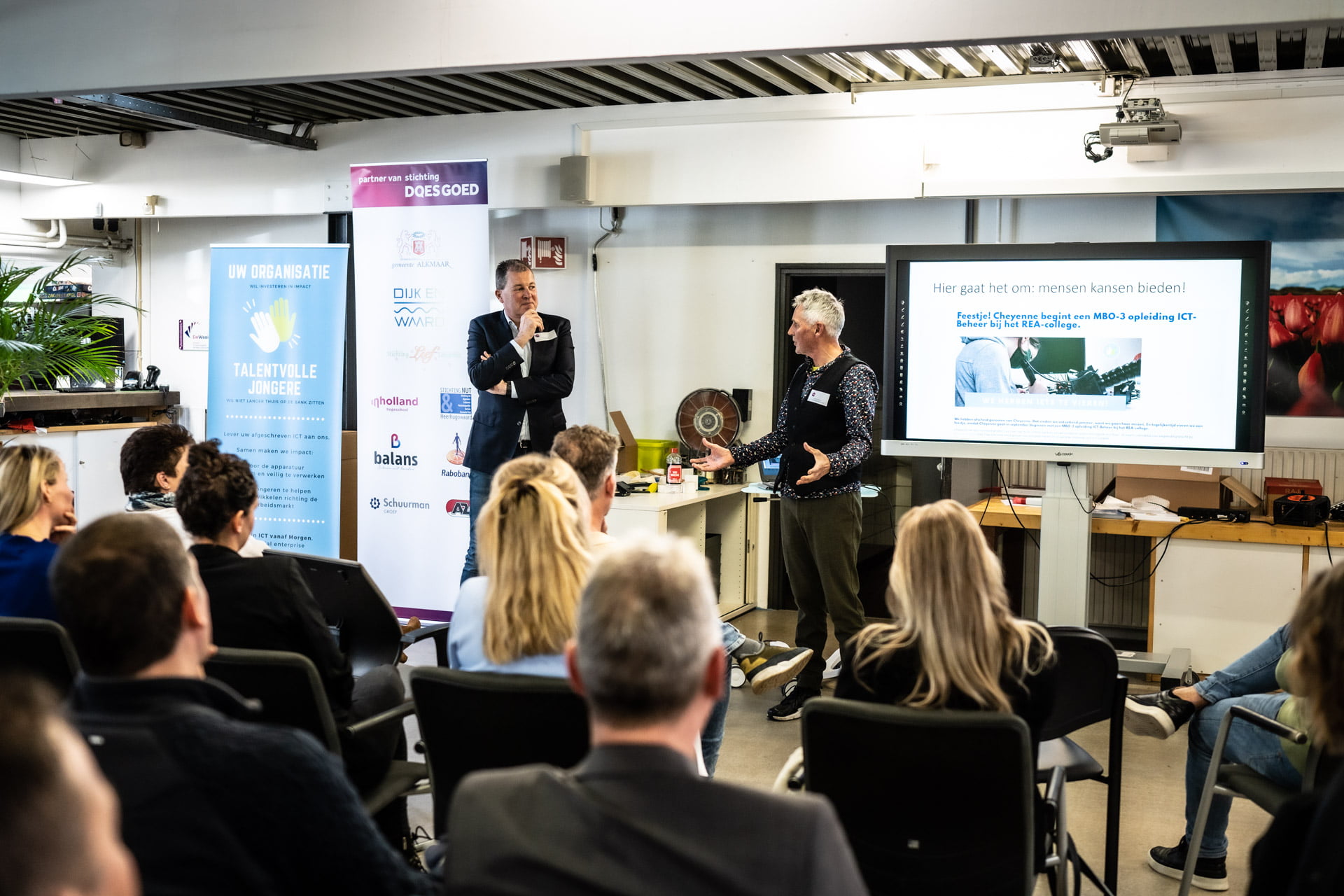 Inspirerend was het zeker met presentaties van Laurens van ICT vanaf Morgen en onze partners Karien Sondervan van Cybersoek, Arjan Piette namens het Regiocollege Zaandam en een pitch van Kopzorg door Marit Schuit en Iris Wester. Afgesloten werd met en rondleiding en een netwerkborrel. Dank aan alle sprekers en Doesgoed voor een inspirerende middag!
