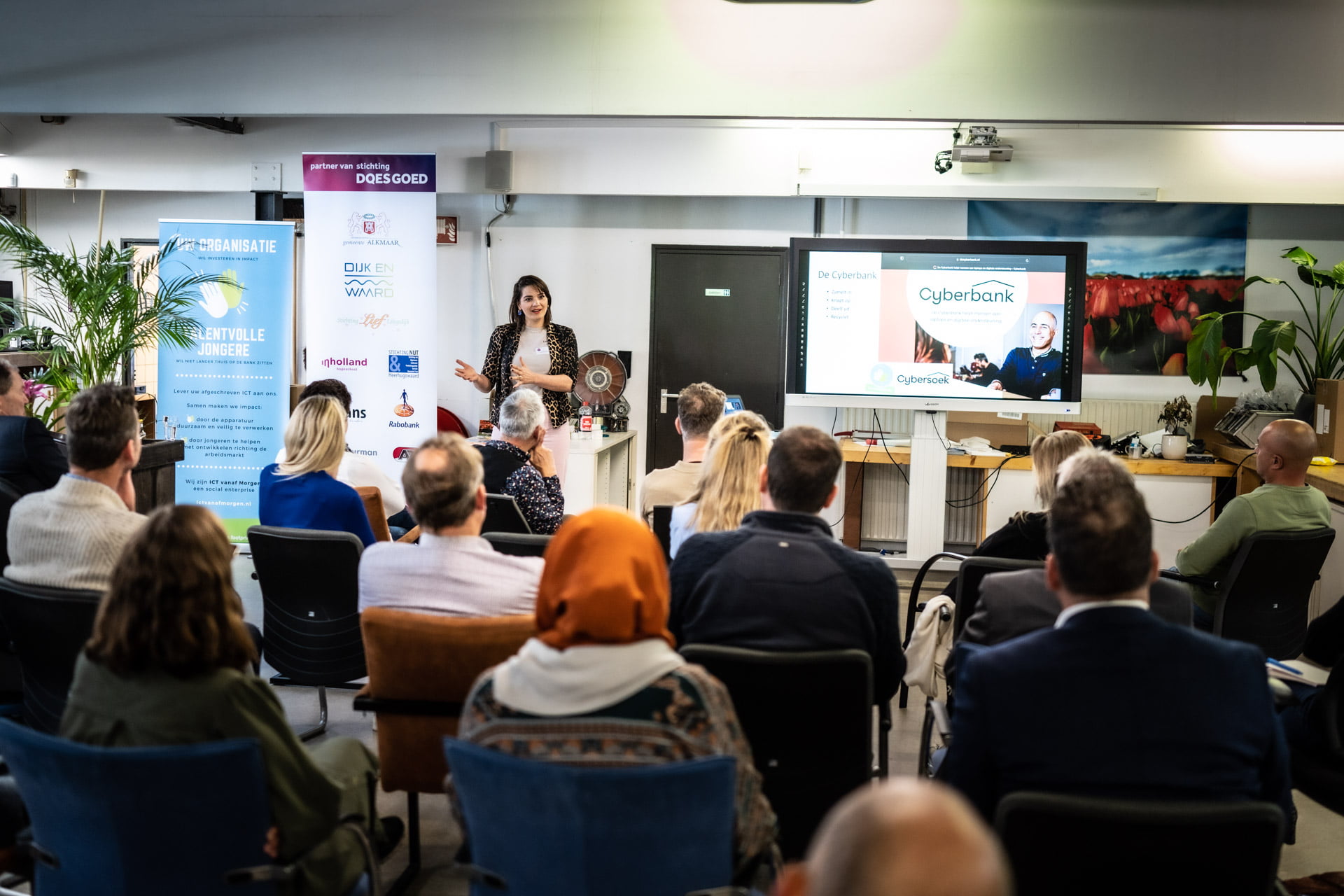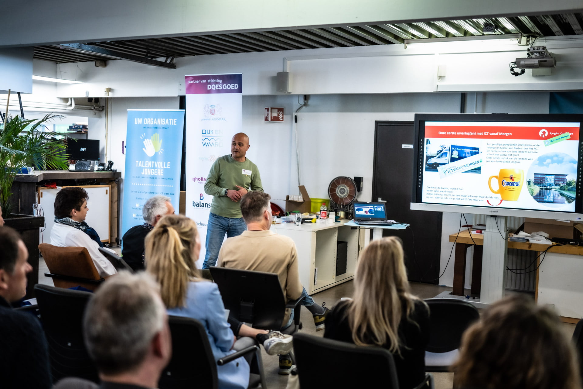Inspirerend was het zeker met presentaties van Laurens van ICT vanaf Morgen en onze partners Karien Sondervan van Cybersoek, Arjan Piette namens het Regiocollege Zaandam en een pitch van Kopzorg door Marit Schuit en Iris Wester. Afgesloten werd met en rondleiding en een netwerkborrel. Dank aan alle sprekers en Doesgoed voor een inspirerende middag!