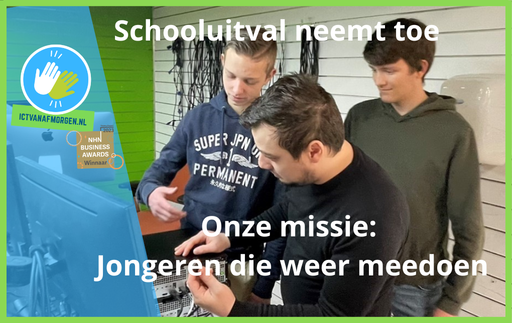 De missie van ICT vanaf Morgen is om deze groep jongeren een weg terug naar school of werk te bieden. Zonder druk en in een veilige werkomgeving doen zij werkervaring op in de ICT om eventueel met een MBO-niveau 2 praktijkverklaring uit te stromen. Maar het belangrijkste is: ze doen weer mee!