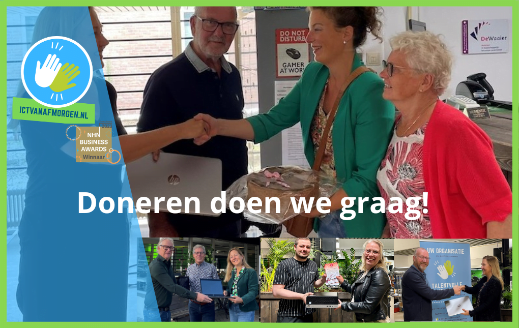 Zo’n 5% van alle hardware die wij refurbishen doneren wij aan stichtingen en verenigingen. Vaak komen de aanvragen hiervoor tot stand op de gezellige beurzen van alle Uitdagingen in onze provincie en Doesgoed in Alkmaar.