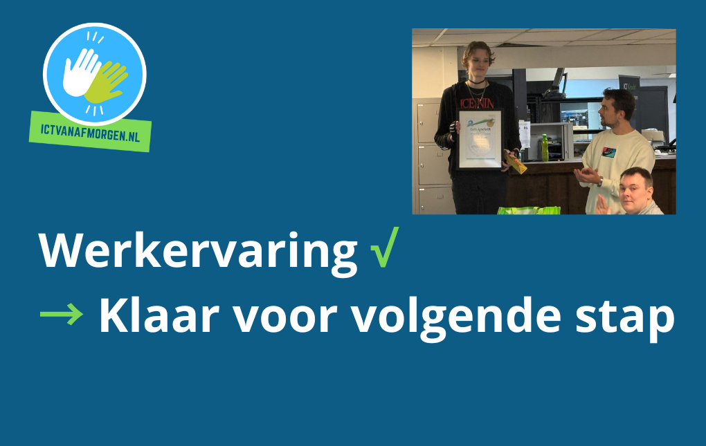 Juul ging na het afronden van haar MBO4-opleiding niet direct aan het werk vanwege persoonlijke omstandigheden. Een Jaar geleden kwam ze bij onze vestiging in Alkmaar om ICT-werkervaring op te doen. Nu ze die ervaring heeft vervolgt Juul haar traject in Hoorn al waar zij gaat werken aan haar persoonlijke doelen. Heel veel succes Juul!